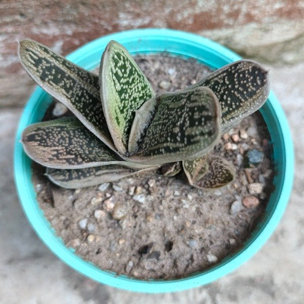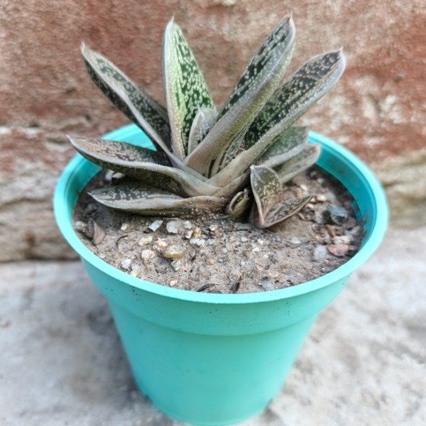 Es un híbrido variegado de tamaño pequeño y de crecimiento lento, en maceta N°8