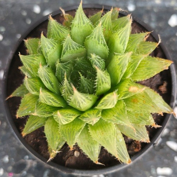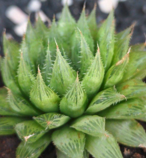 Hermosa planta en maceta Nº8, con hojas casi transparentes que parecen de cristal que terminan con pequeños pelos.