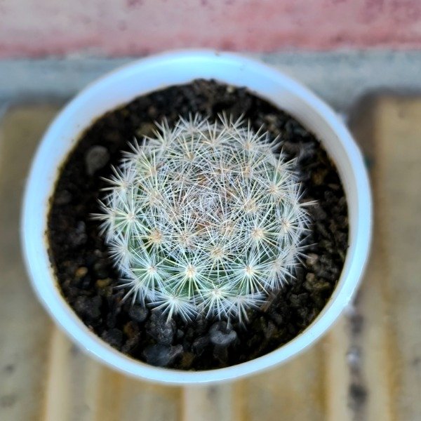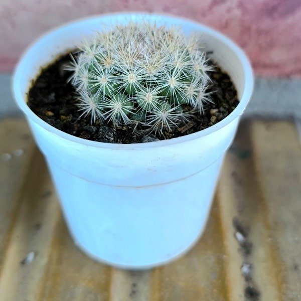 Rara mammillaria en maceta Nº6 de color blanco brillante.