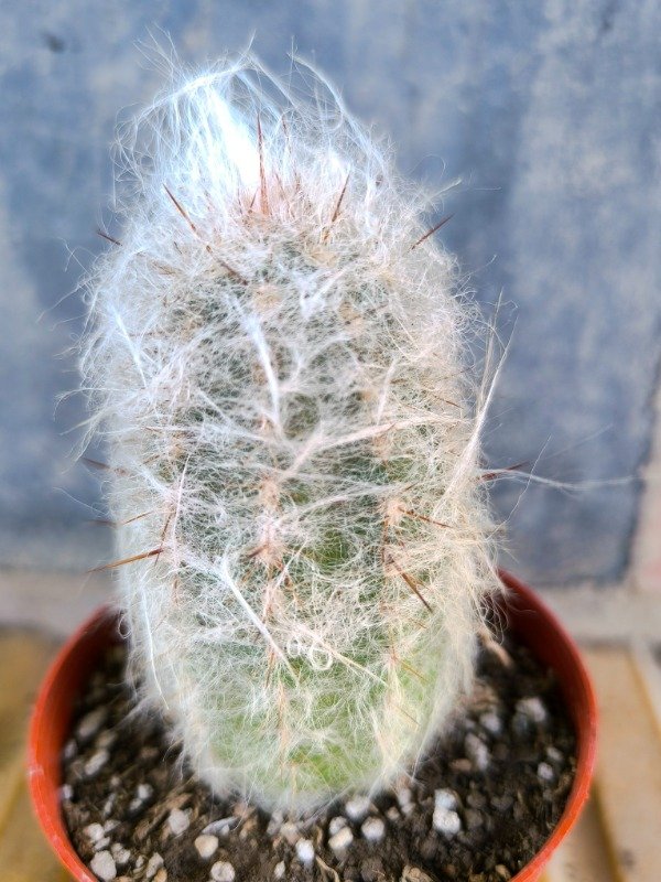 Cactus cabeza de viejo, en maceta Nº8, tiene plos lanosos y es sensible a exceso de agua.